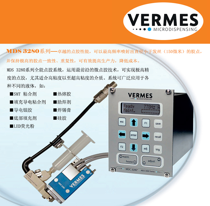 喷射式点胶系统MDS 3280系列基于成熟的压电制动器,具有非接触点胶技术的全部优势。