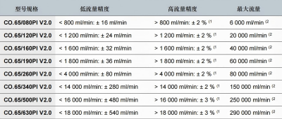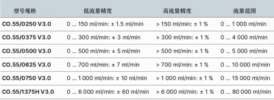1、SEMIFLOWCO.65各型号流量范围与误差精度