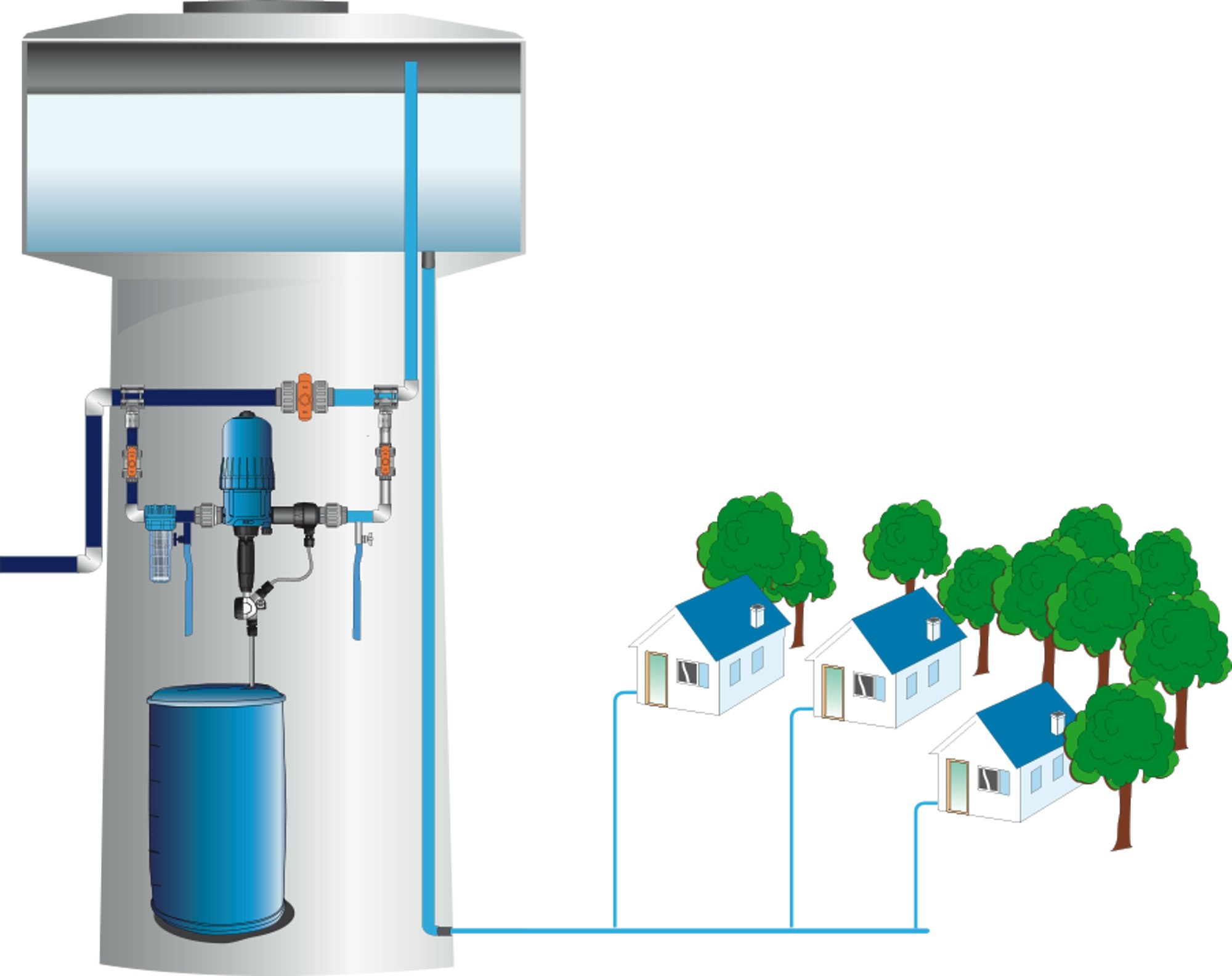 水处理:在饮用水、循环水、游泳池水等系统中投加消毒剂、絮凝剂等。